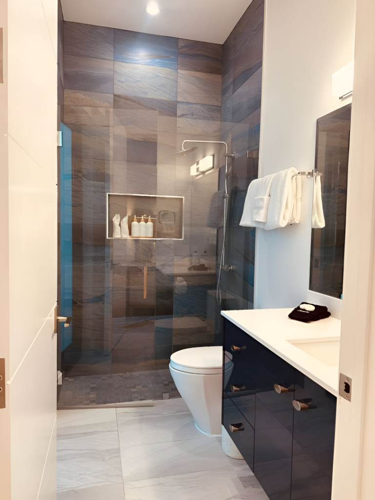 Wide clearance to shower and toilet