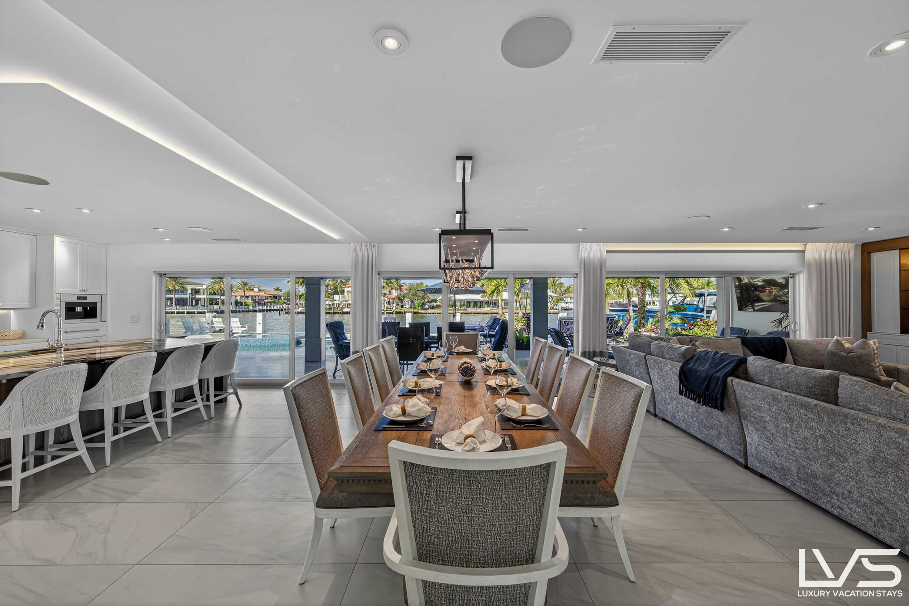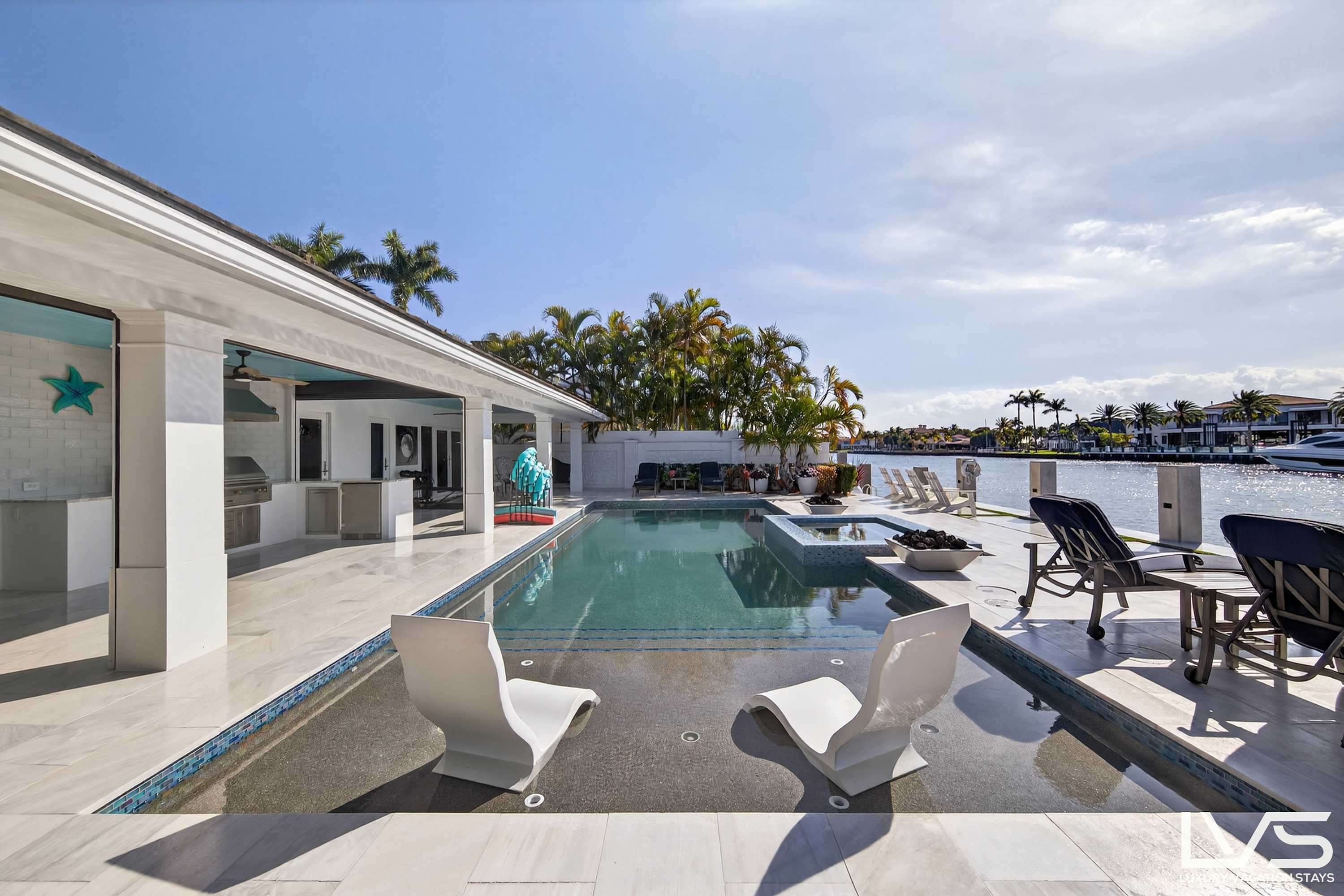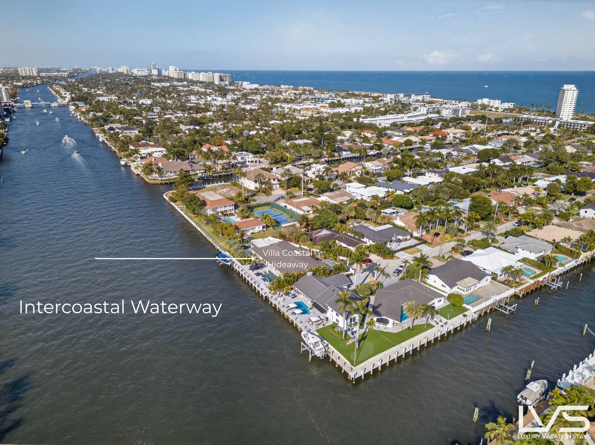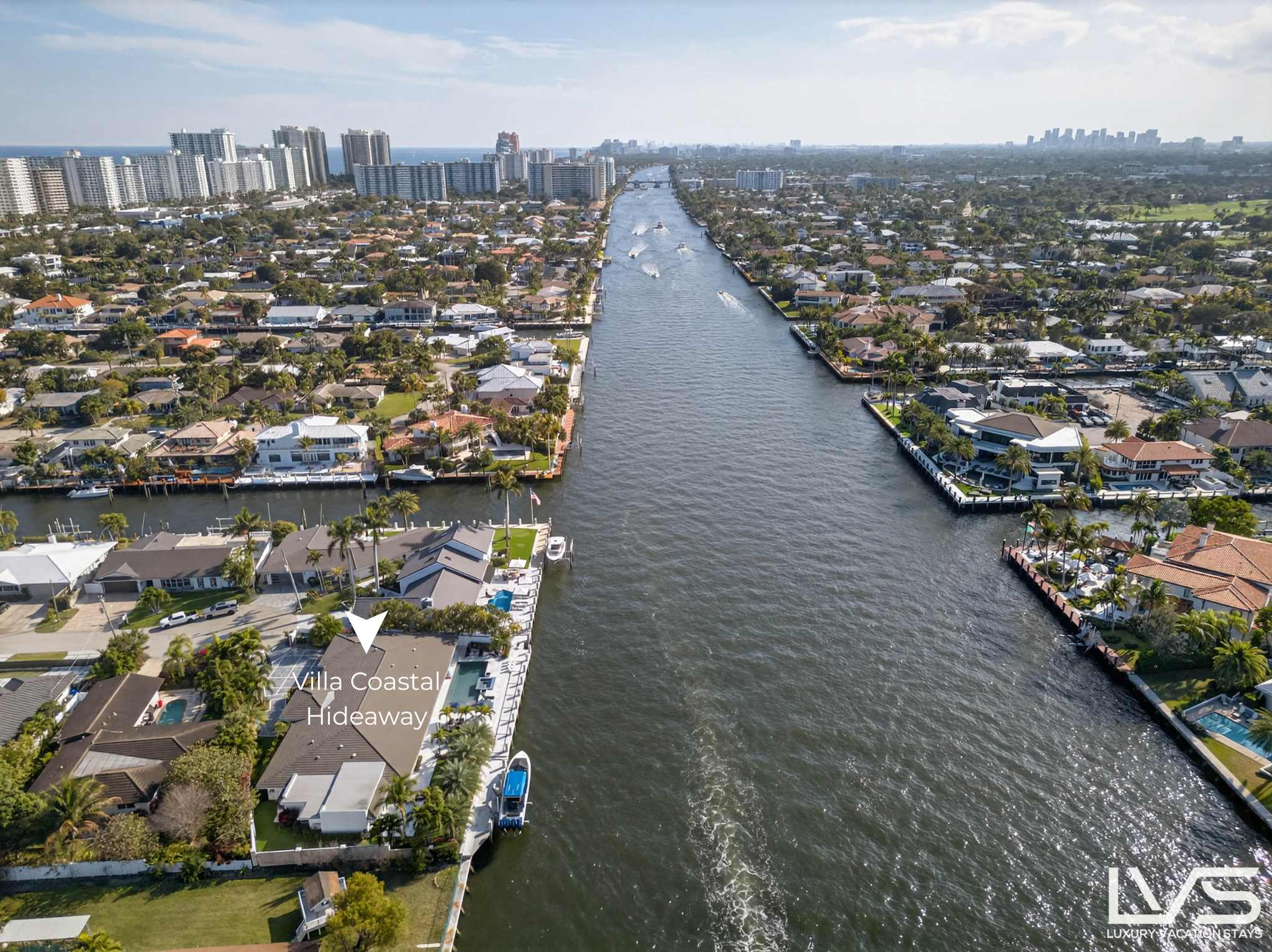 Villa Coastal Hideaway offers the perfect combination of waterfront luxury and modern comfort in Fort Lauderdale. With Intracoastal frontage, private dock, and a location just 5 minutes walk to the beach, this villa features open-concept living, a chef’s kitchen, stylish interiors, and a home theater. The private backyard includes a heated pool and spa, fire bowls, alfresco dining, lounges w/ umbrellas and poolside kitchen, creating a true South Florida retreat close to top dining, shopping, and entertainment.