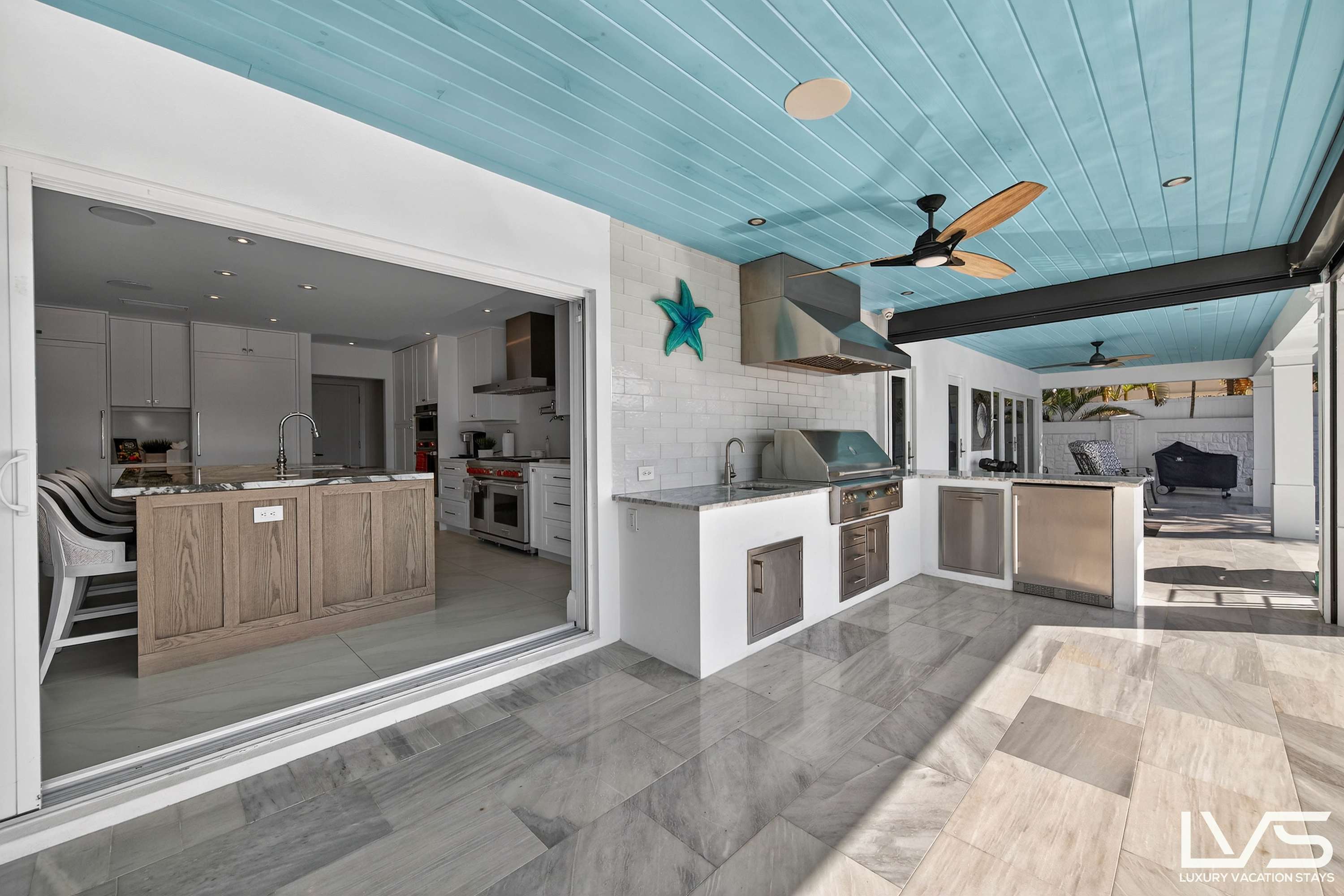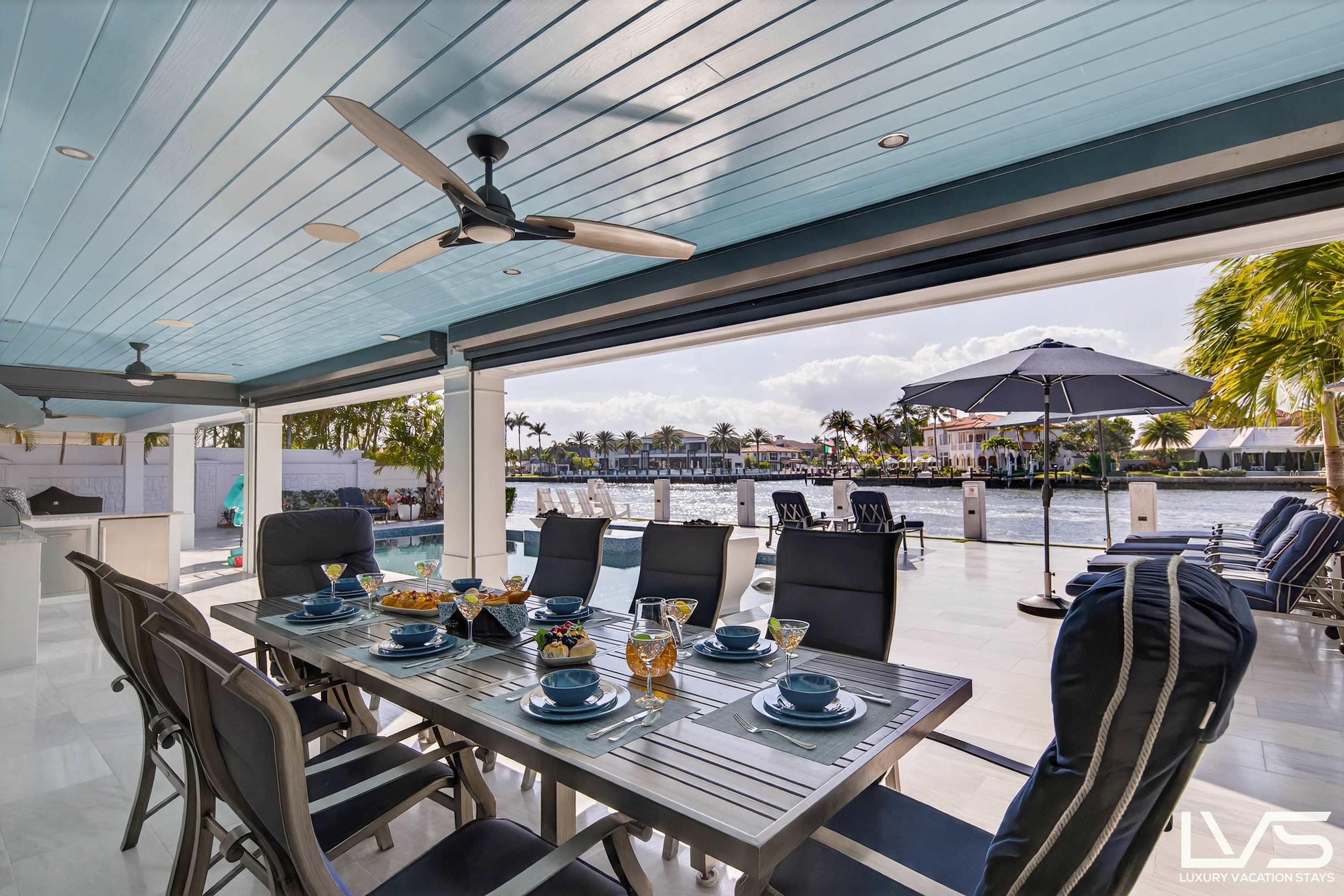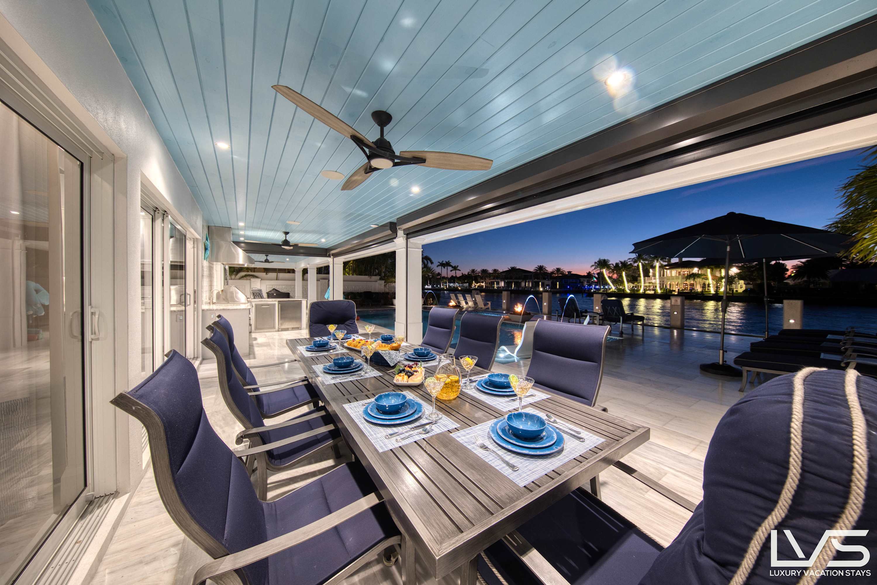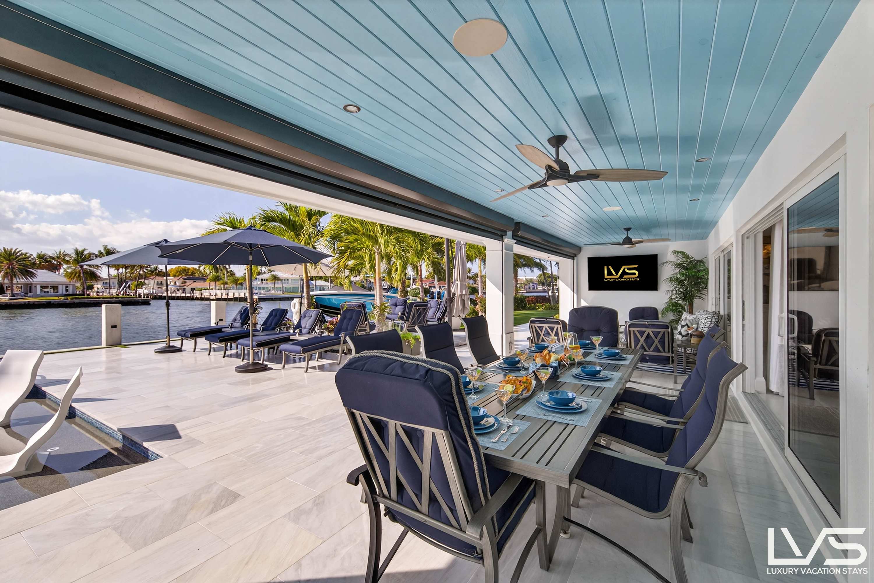 Villa Coastal Hideaway offers the perfect combination of waterfront luxury and modern comfort in Fort Lauderdale. With Intracoastal frontage, private dock, and a location just 5 minutes walk to the beach, this villa features open-concept living, a chef’s kitchen, stylish interiors, and a home theater. The private backyard includes a heated pool and spa, fire bowls, alfresco dining, lounges w/ umbrellas and poolside kitchen, creating a true South Florida retreat close to top dining, shopping, and entertainment.