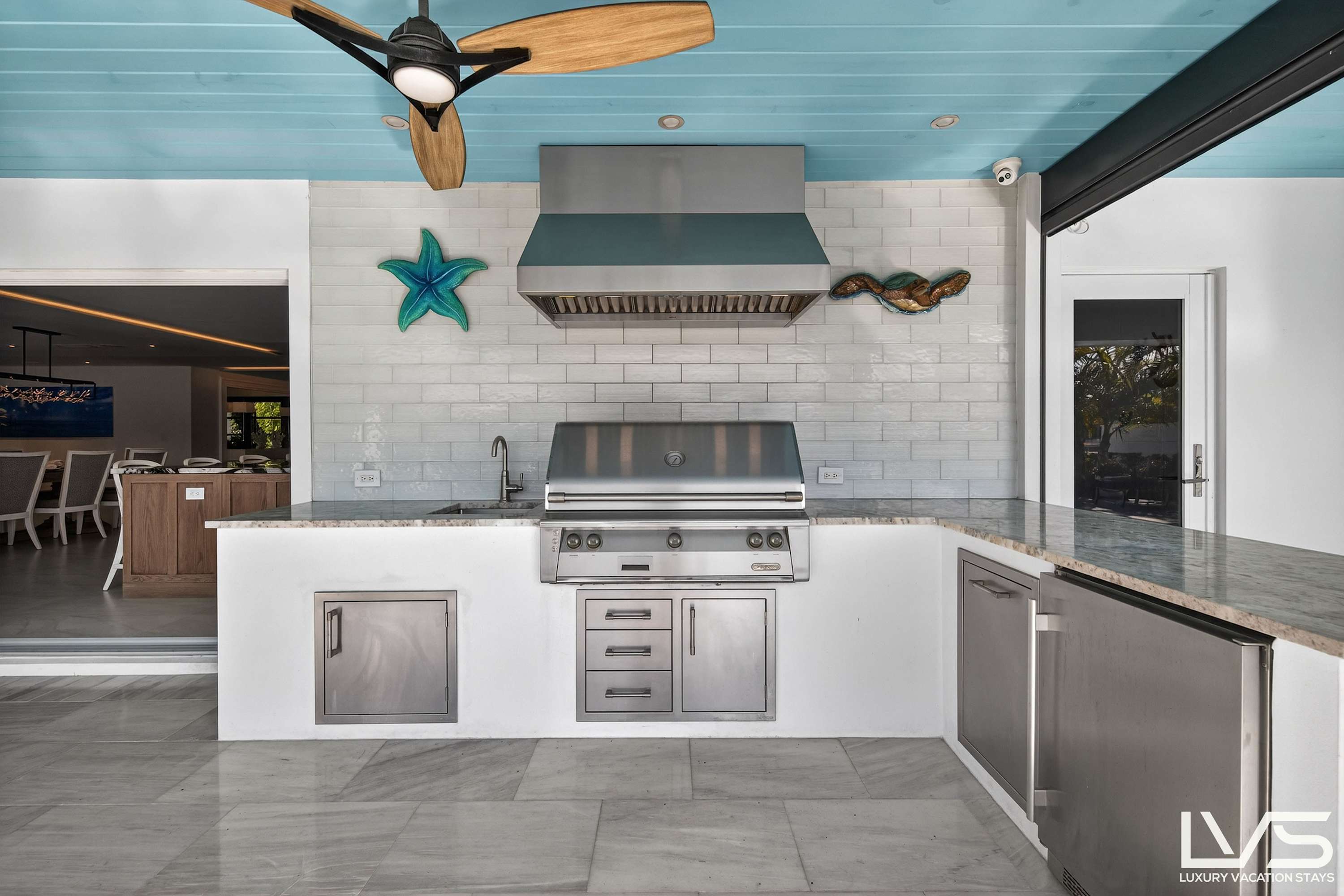 ● Poolside Outdoor Kitchen: Built-in grill, mini fridge, and sink—perfect for cooking and entertaining outdoors.