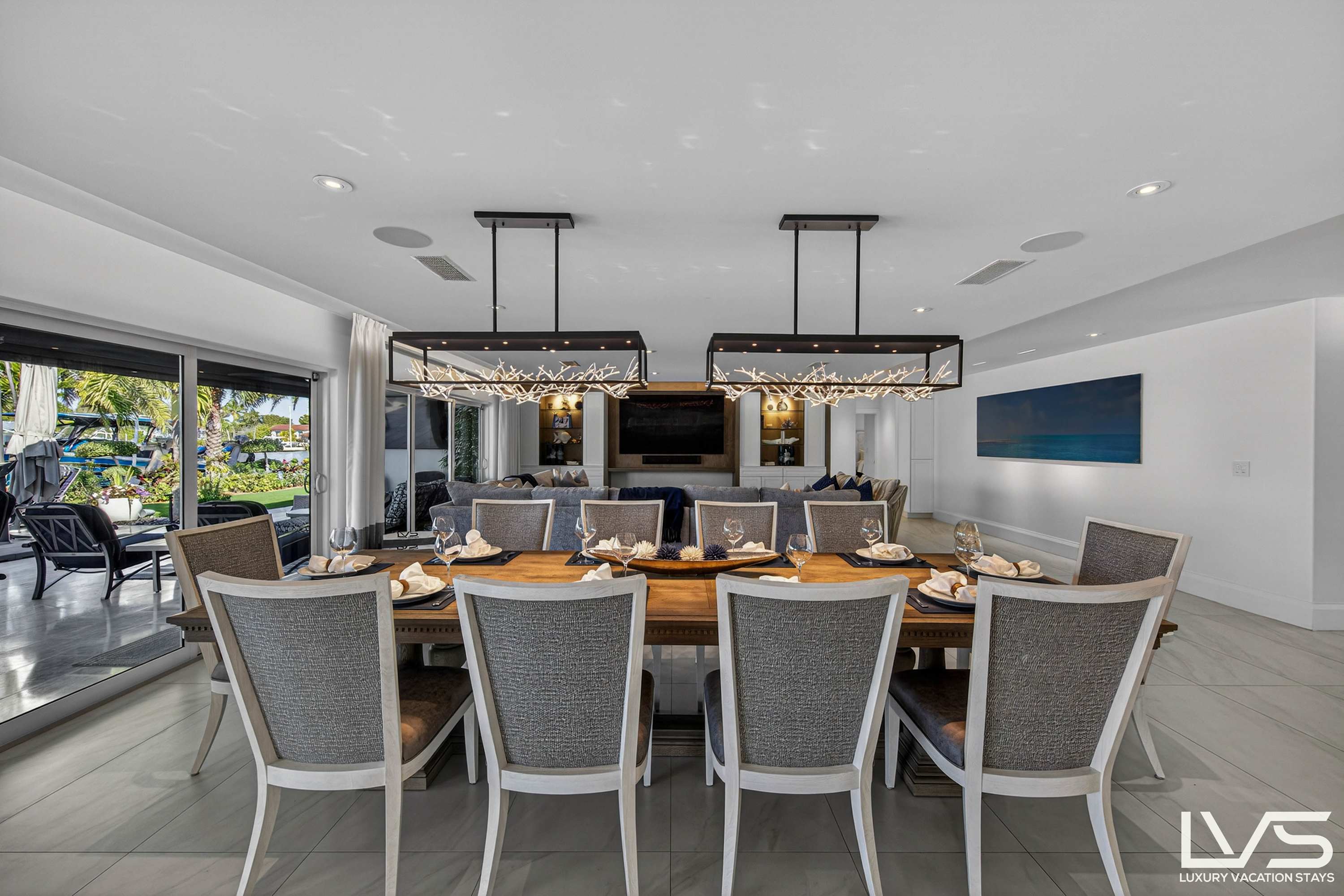 ● Patio Alfresco Dining: Seating for 8 with Smart TV, ideal for poolside meals or casual gatherings.